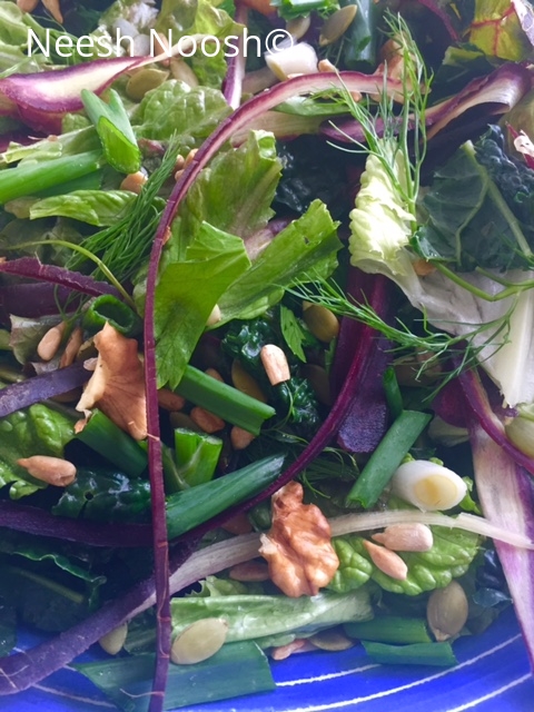 1 cup combined, turnip greens, fennel greens and Swiss chard (I used the greens from the root vegetables in this recent dish)