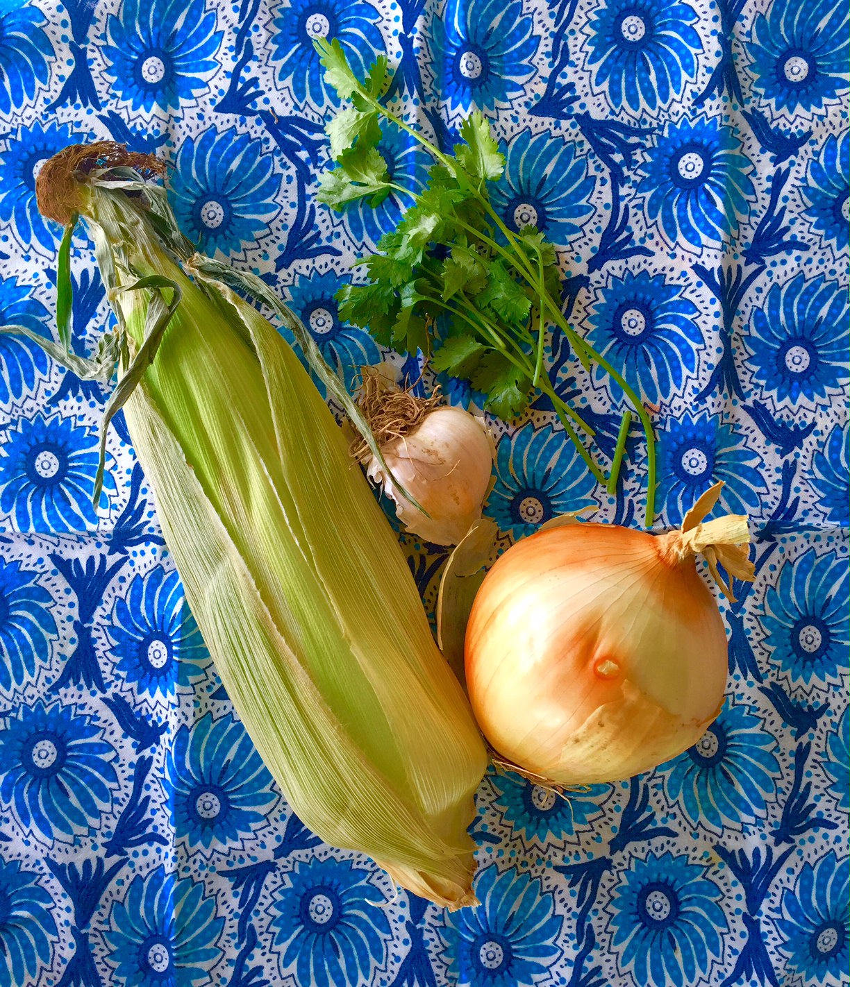 5 ears of corn, shucked and kernels removed from cob. Save a tiny bit of husk from one for ash