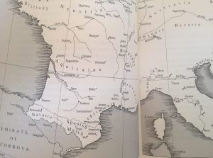 It was in this village and others nearby that the Kingdom of Septimania existed from 768-900. I attempted to read a dry academic book about the area by Arthur J. Zuckerman but I couldn’t get beyond the introduction. Fortunately, this article nicely summarizes his fascinating findings. For 140 years, this slice of southern France, including the city of Toulouse, was a Jewish kingdom, with a king named Natronai ben Zabinai who changed his name to Machir. It was suggested that perhaps he was the messiah.
