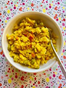 The dish I prepared for this post is a choose your own adventure dish because it can be prepared and used in so many ways. It’s called kitchari and the reason I offer it is that it is ubiquitous to India (it’s their comfort food-like American tomato soup and a grilled cheese sandwich, or Israeli pita and hummus). It was definitely NOT served at Chabad during Passover. But, it can be eaten for any of the following reasons and ways: