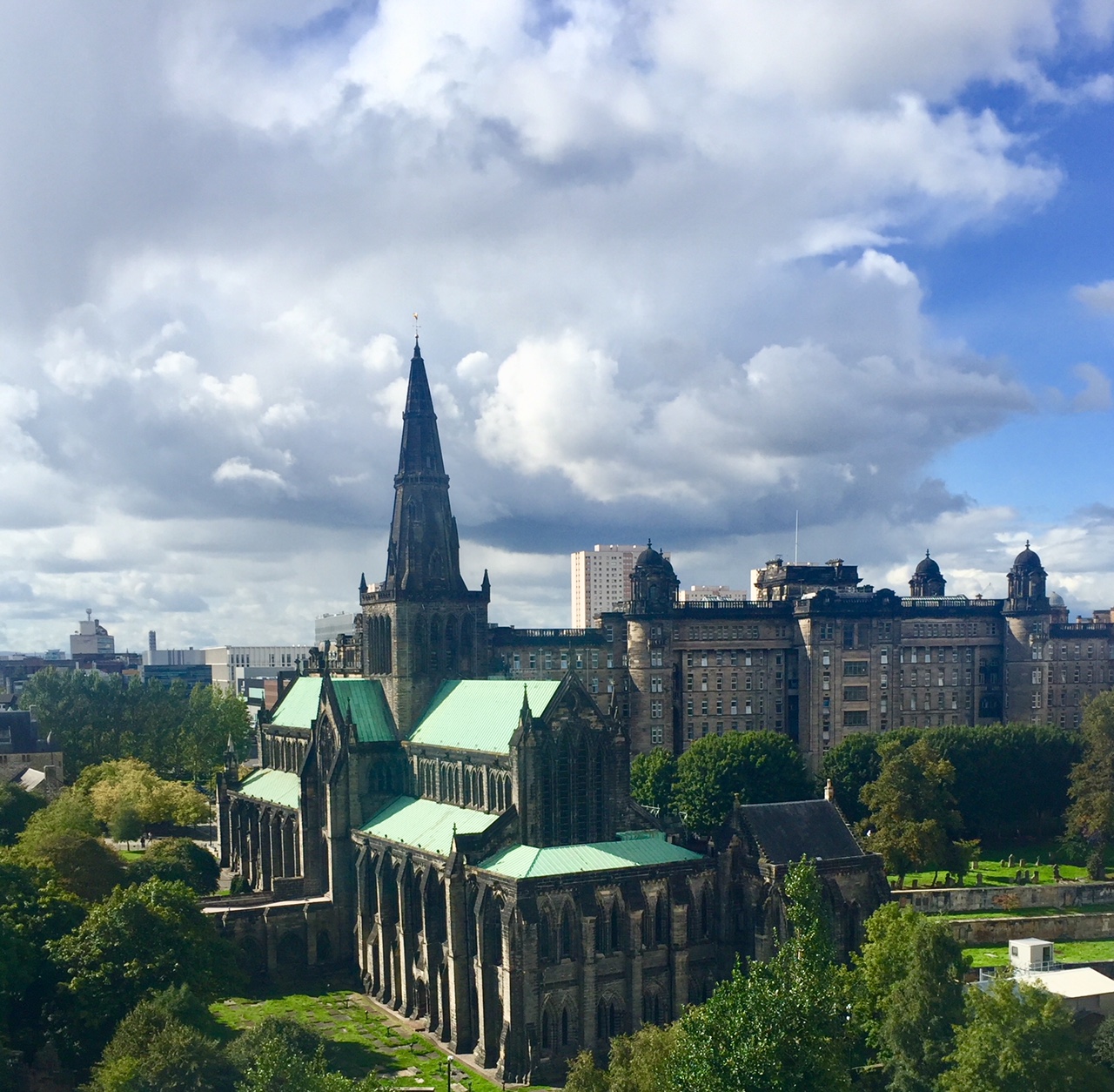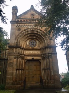 After visiting the Cathedral, a walk across central Glasgow took me to the historic Garnethill synagogue, built in the 1880s. Unfortunately, it was closed when I visited but the stunning, elegant building was nestled amongst old trees and bushes. A Scottish woman I know who was married at the synagogue explained that as the Jewish population of Glasgow has shrunk (from about 10,000), congregations have combined and/or closed. This synagogue, though, is still fully in use and also houses the Scottish Jewish Archives.