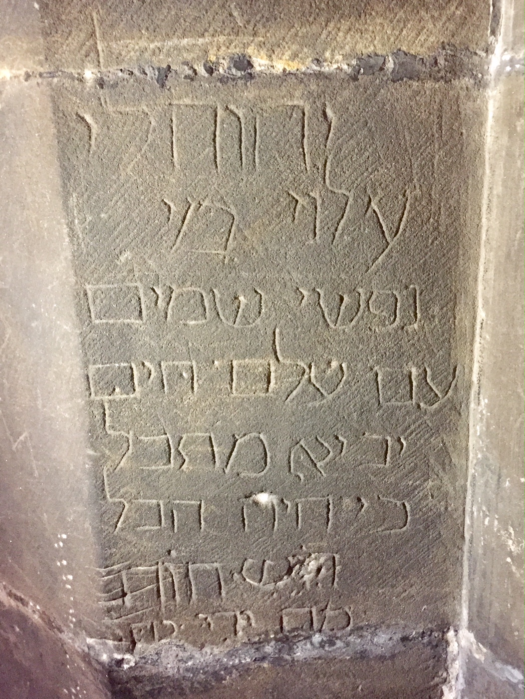 Though most of my time was spent traipsing across stunning, boggy and rocky landscapes of the Western Highlands and Inner Hebrides, which gave me lots of time for contemplation before Rosh Hashana, I did carve out a bit of time for Jewish exploration in Glasgow. The city is home to the majority of Scottish Jews (currently about 4,000 people). While touring the 12th century Glasgow Cathedral, I saw Hebrew writing etched into a pillar (as an aside, the room was filled with an ill-placed bizarre temporary exhibit of iconic global sites made with Legos by a 50+ year old man).