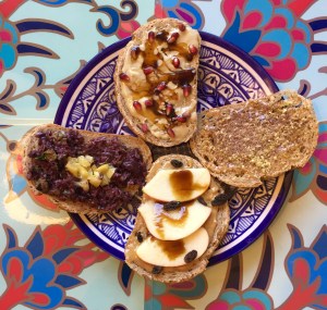 Tu B’shevat–the new year celebration of trees and also known as the Jewish Earth Day–means eating lots of delicious fruits with edible interiors, edible exteriors, and edible everything at holiday seders. For the holiday this year (which starts on Sunday evening), I created a DIY “toast toppings” to enjoy during that meal that includes most of the seven species of ancient Israel (wheat, barley, grapes, olives, figs, dates and pomegranates), along with other significant fruits-including carob–and a nut butter. Continue reading