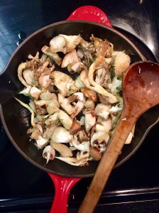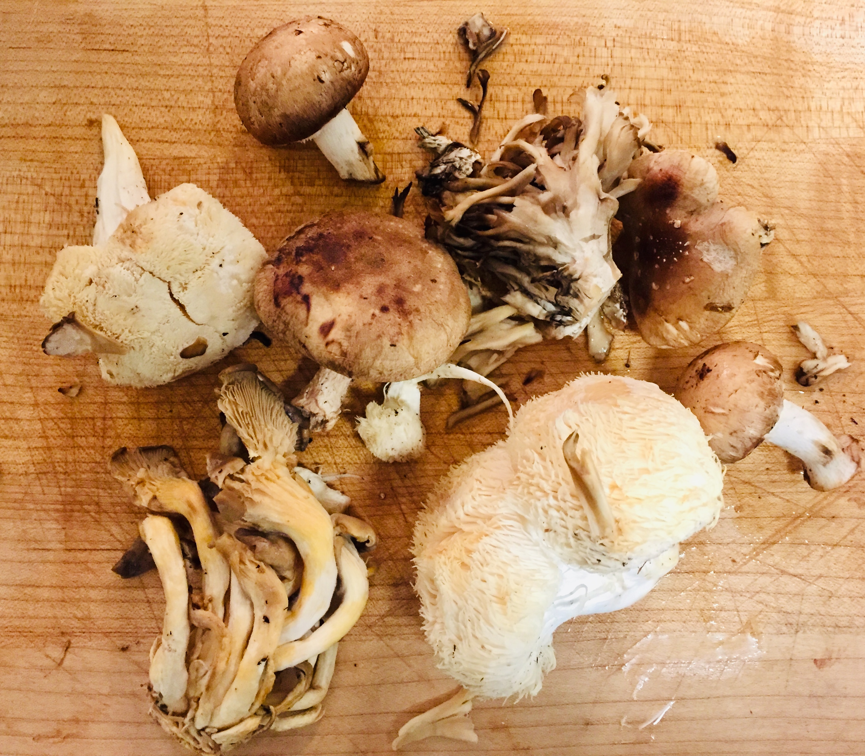 3-4 cups mixed mushrooms. Many of the mushrooms I chose were delicate and could be gently torn into smaller pieces by hand. Otherwise, cut them into generally uniform medium-size pieces
