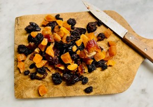 1 cup of an assortment of dried fruit, cut into small pieces. I used apricots, prunes, dates and raisins