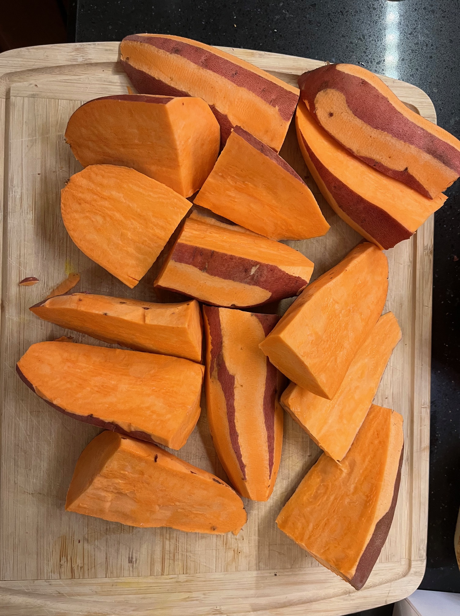 3 large sweet potatoes, peeled and shredded (I left part of the skin on them)